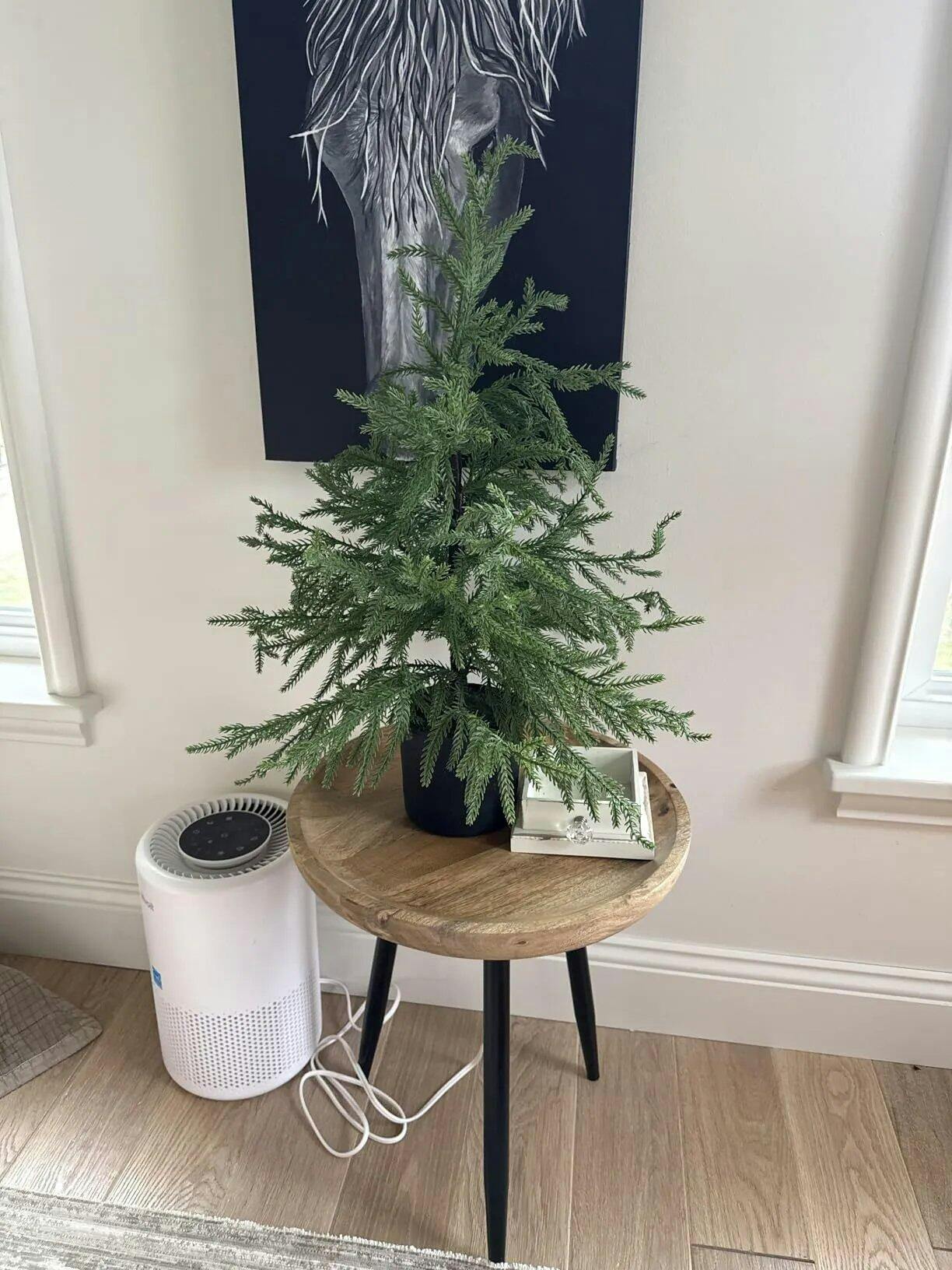 Не се изисква монтаж или поддръжка -Изкуствената ела е висока 61 см. Просто я разопаковайте и поставете – не е необходимо поливане, косене или поддръжка. Чудесно за натоварени домове, имоти под наем или офиси.